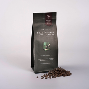 Delivering an Italian 'kick', for Espresso Traditional Blend we married wonderful Arabica and Robusta beans for notes of brown sugar and raisins with a creamy mouthfeel.